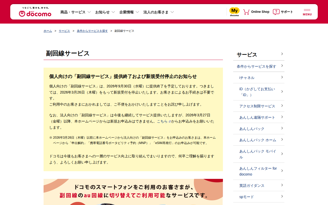 副回線サービス | サービス | NTTドコモ