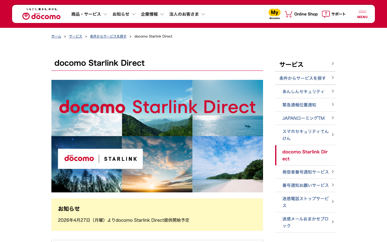 docomo Starlink Direct | サービス | NTTドコモ