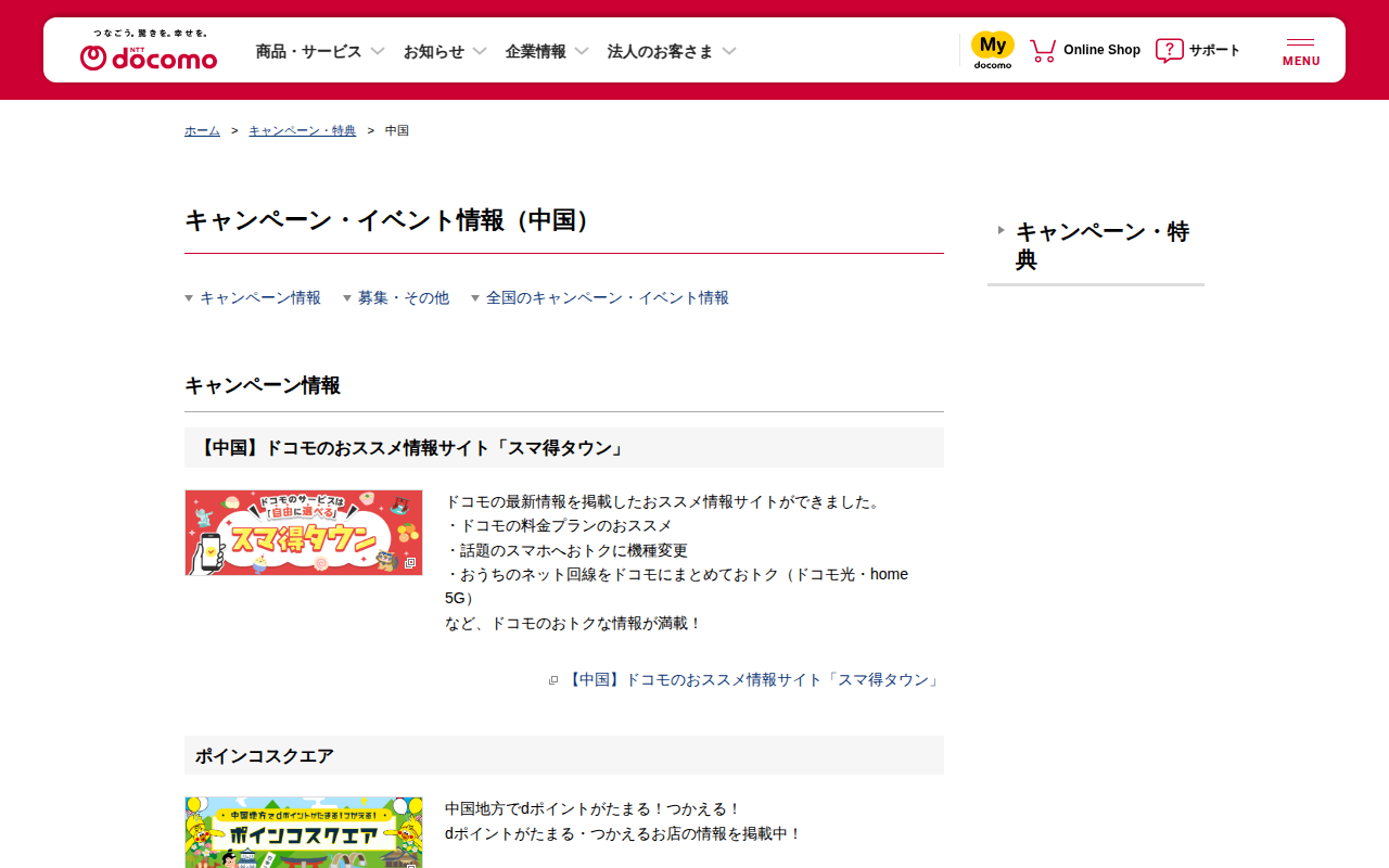 キャンペーン・イベント情報(中国) | NTTドコモ