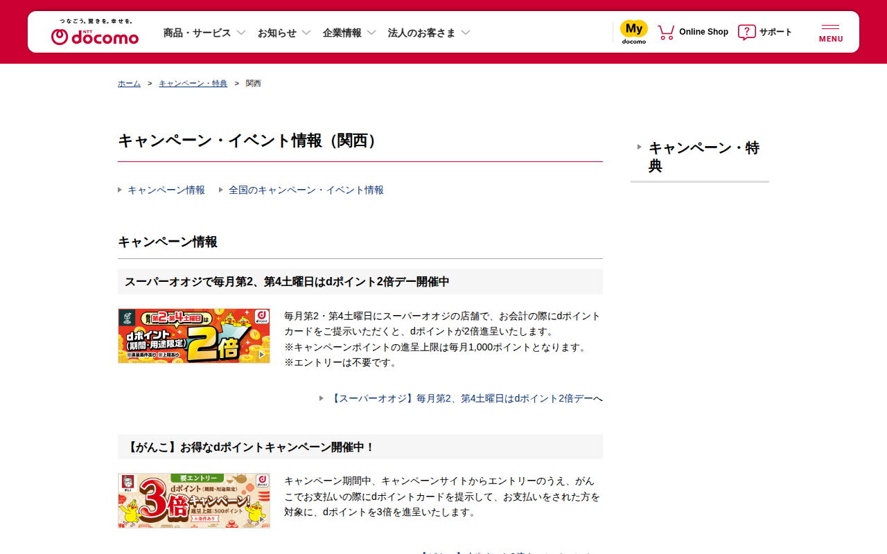 キャンペーン・イベント情報(関西) | NTTドコモ