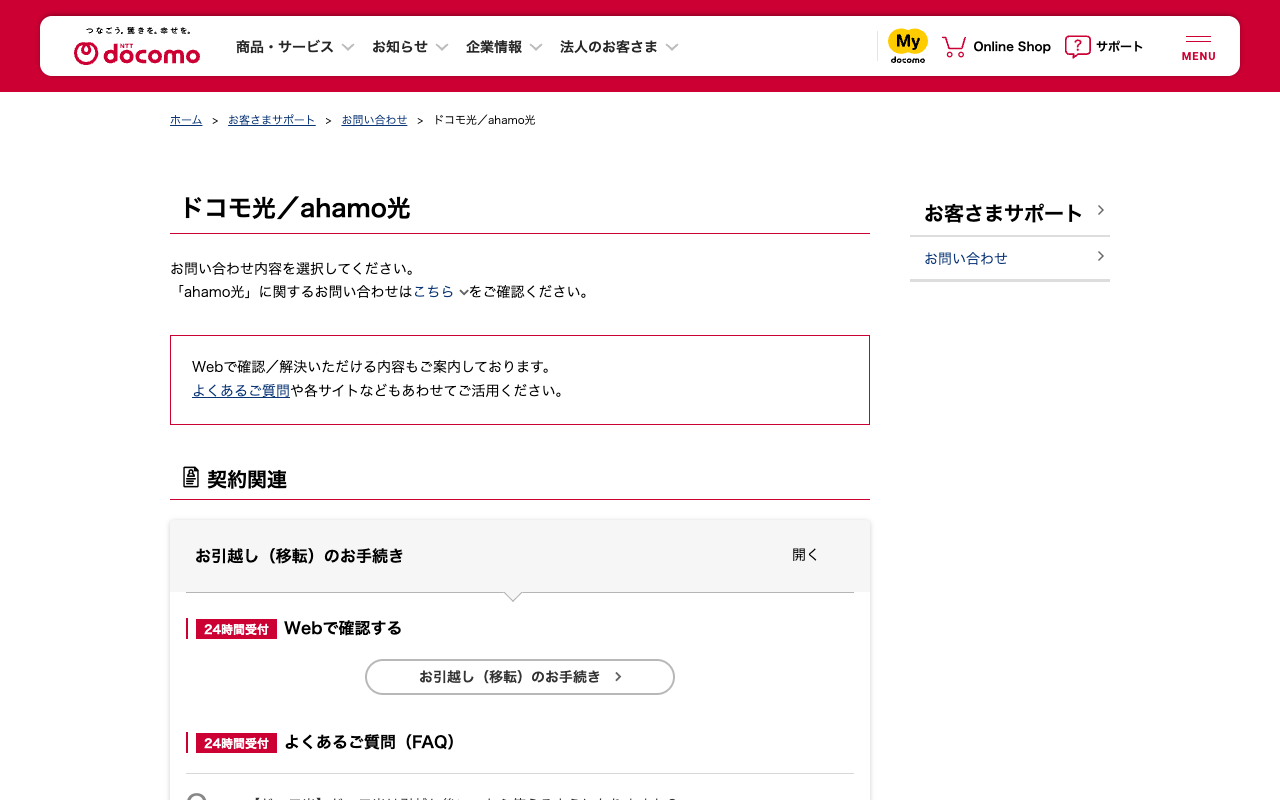 ドコモ光/ahamo光 | お問い合わせ | お客さまサポート | NTTドコモ