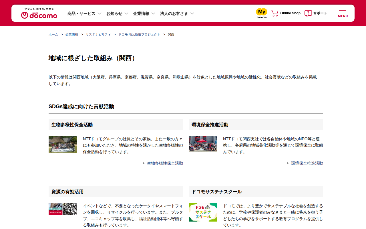 地域に根ざした取組み(関西) | 企業情報 | NTTドコモ