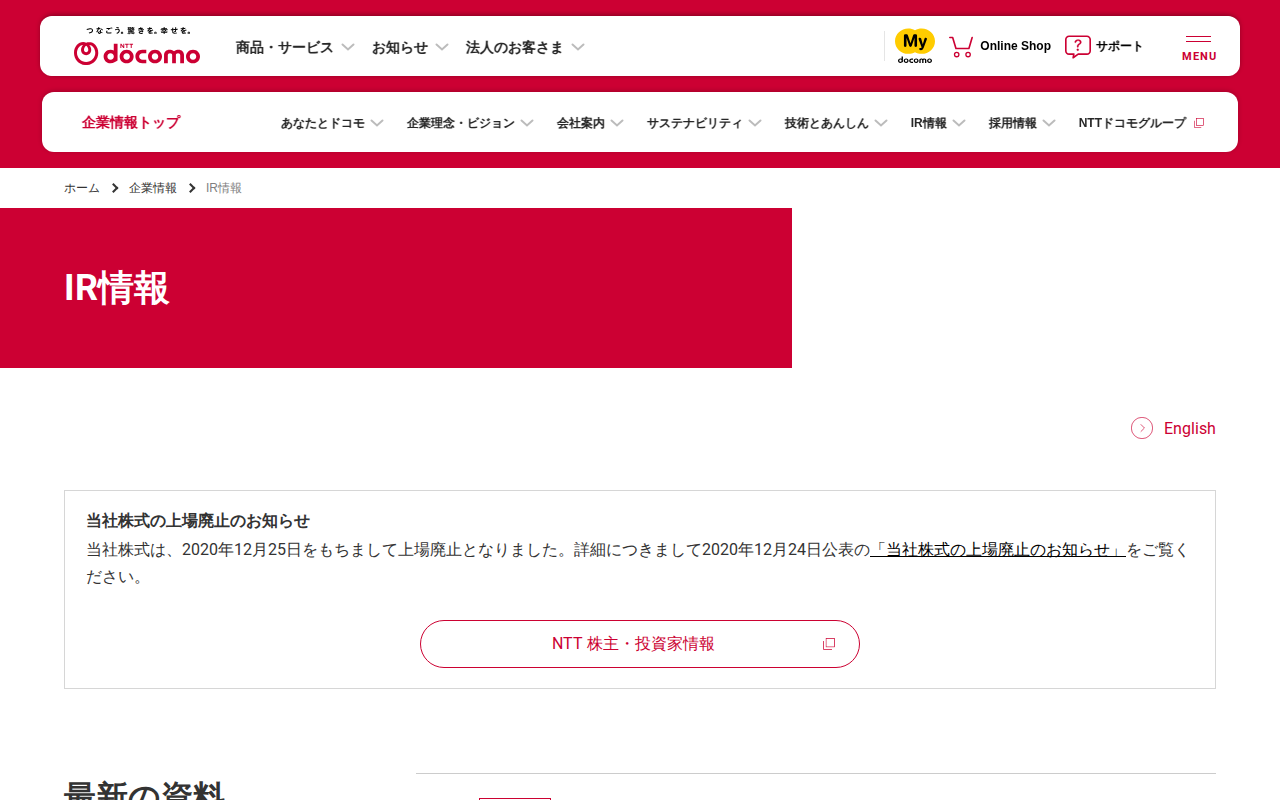 IR情報 | 企業情報 | NTTドコモ