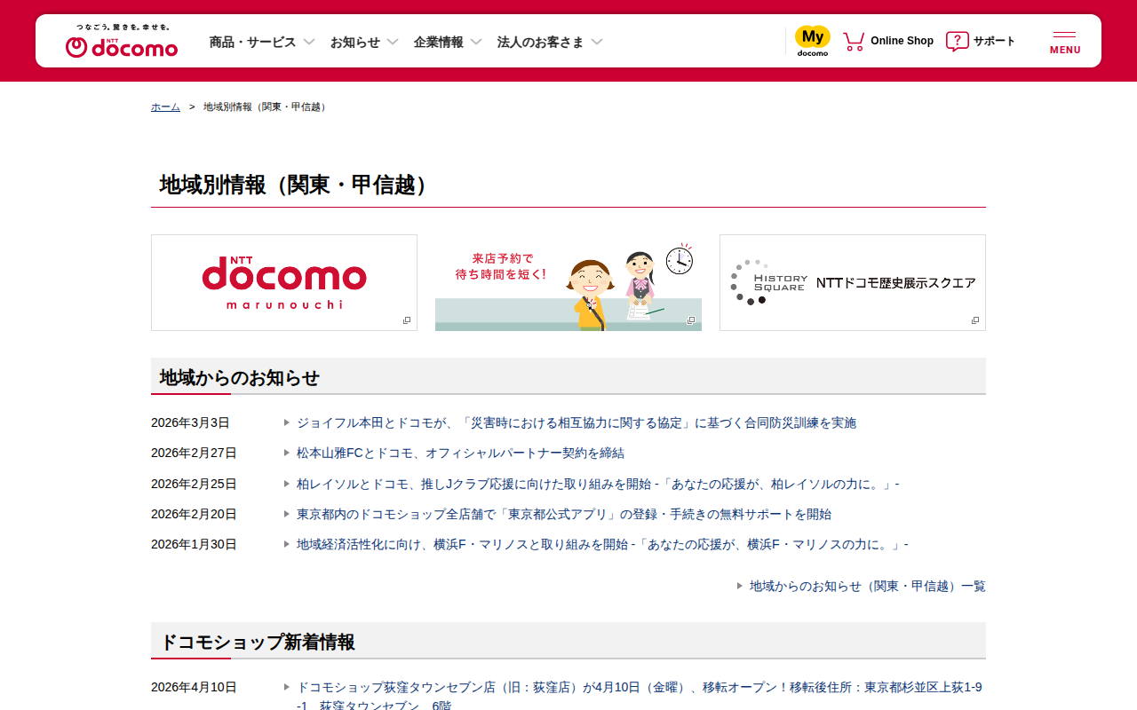 地域からのお知らせ(関西) | お知らせ | NTTドコモ