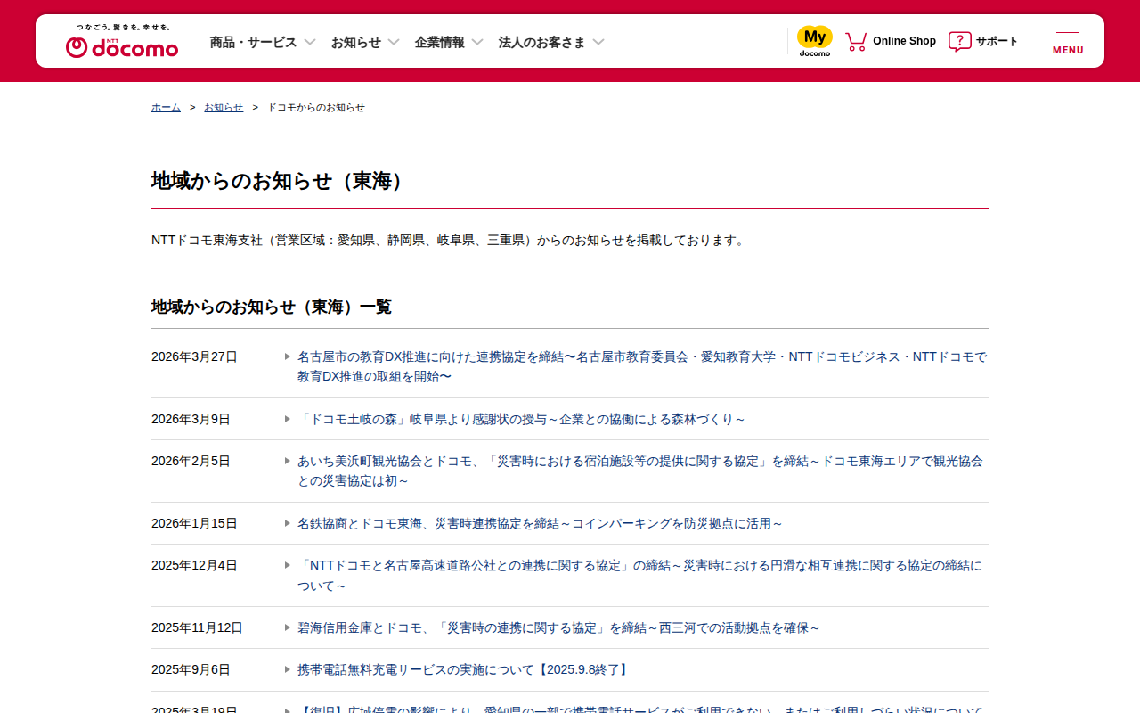 地域からのお知らせ(東海) | お知らせ | NTTドコモ