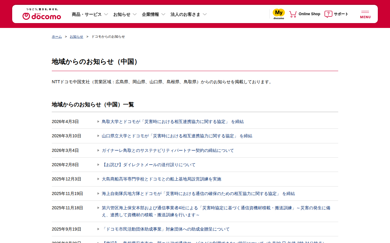 地域からのお知らせ(中国) | お知らせ | NTTドコモ