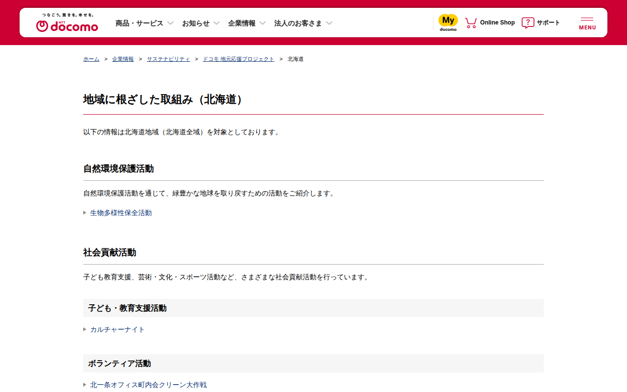 地域に根ざした取組み(北海道) | 企業情報 | NTTドコモ
