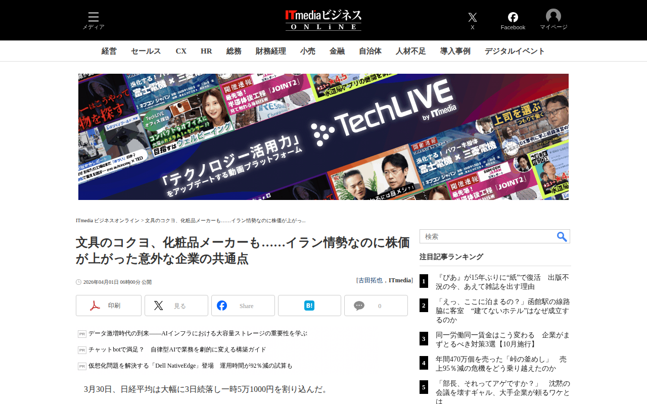 文具のコクヨ、化粧品メーカーも……イラン情勢なのに株価が上がった意外な企業の共通点(1/3 ページ) - ITmedia ビジネスオンライン