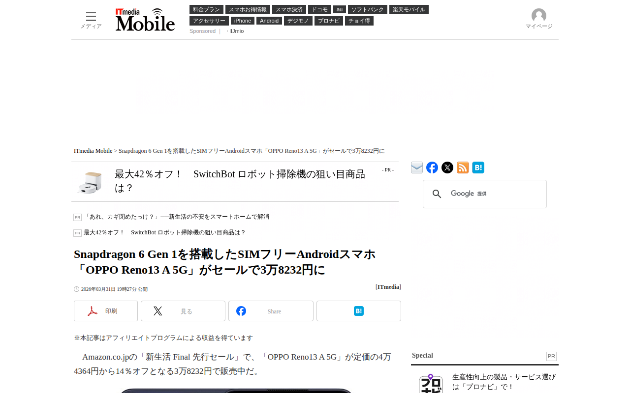 Snapdragon 6 Gen 1を搭載したSIMフリーAndroidスマホ「OPPO Reno13 A 5G」がセールで3万8232円に - ITmedia Mobile