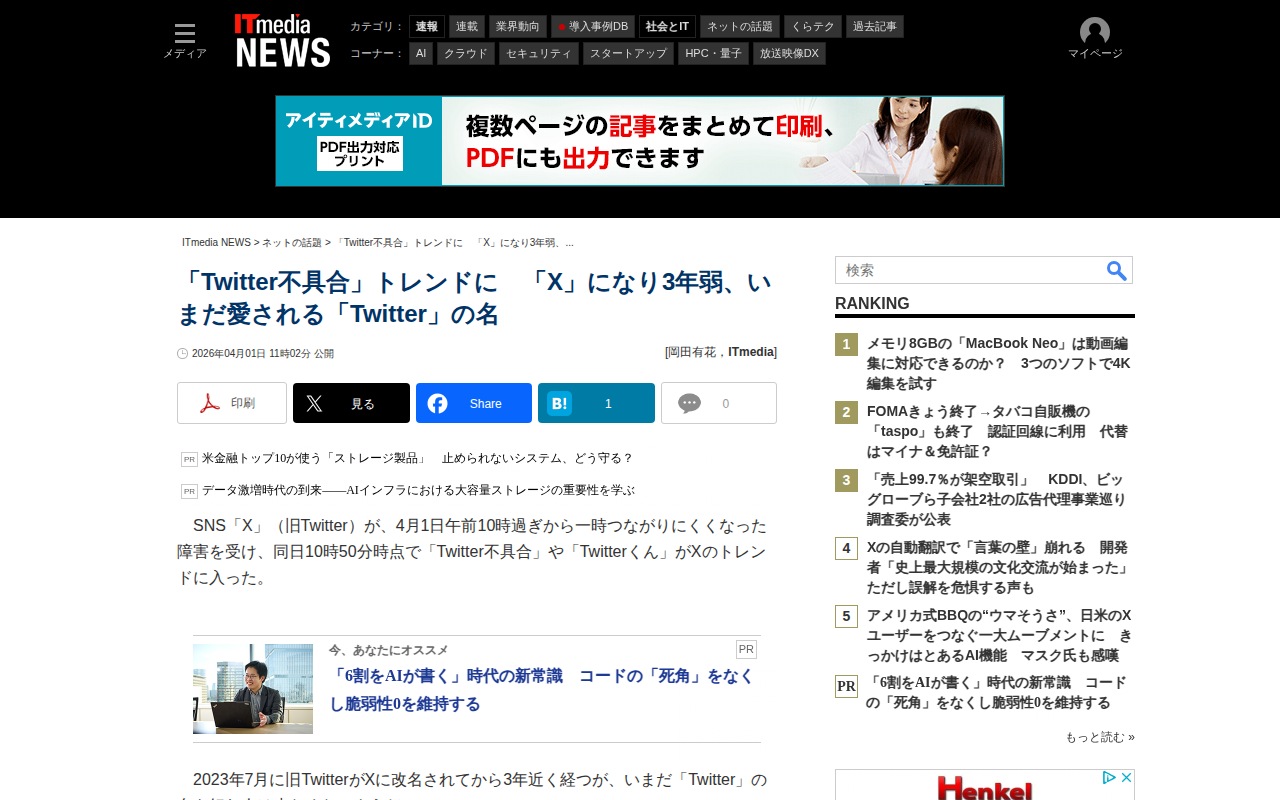 「Twitter不具合」トレンドに 「X」になり3年弱、いまだ愛される「Twitter」の名 - ITmedia NEWS