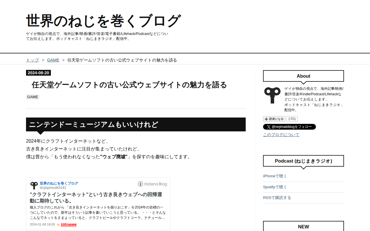 www.nejimakiblog.comで最近保存されたページ一覧です。 気になるページを開くと、そのURLの保存履歴を時系列で確認できます。