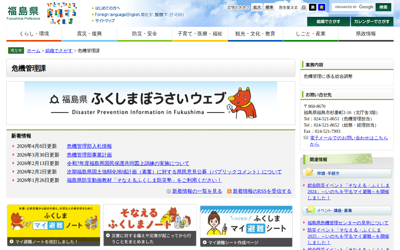 危機管理課 - 福島県ホームページ