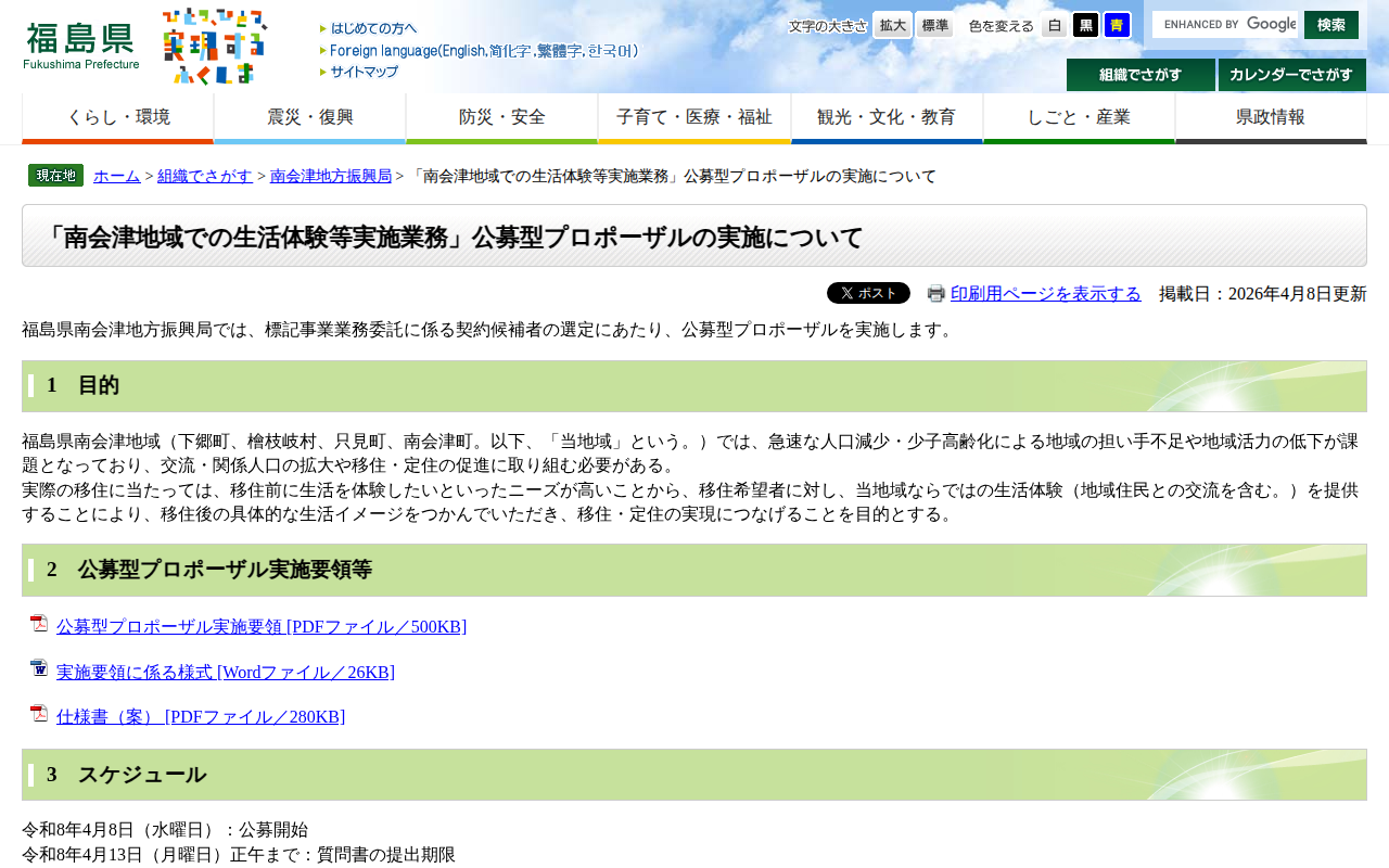「南会津地域での生活体験等実施業務」公募型プロポーザルの実施について - 福島県ホームページ
