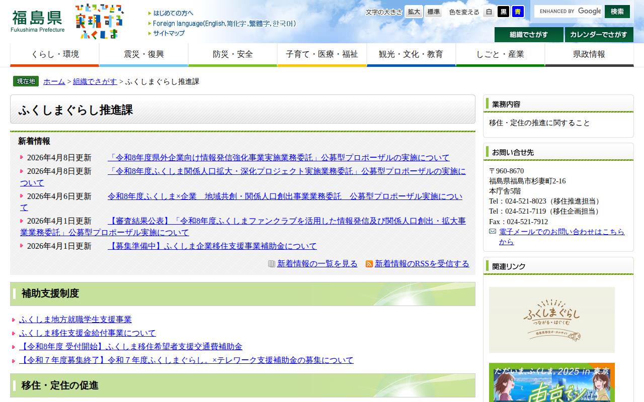 ふくしまぐらし推進課 - 福島県ホームページ