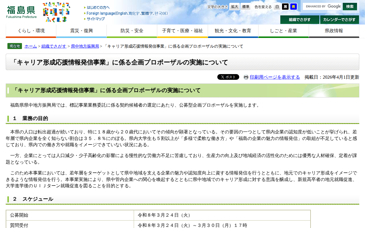 「キャリア形成応援情報発信事業」に係る企画プロポーザルの実施について - 福島県ホームページ