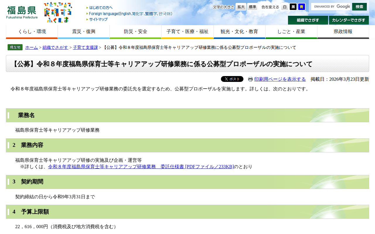 【公募】令和8年度福島県保育士等キャリアアップ研修業務に係る公募型プロポーザルの実施について - 福島県ホームページ