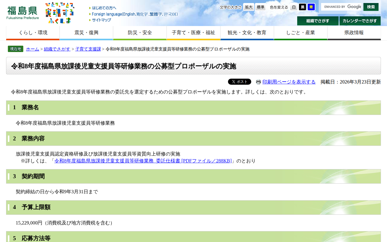 令和8年度福島県放課後児童支援員等研修業務の公募型プロポーザルの実施 - 福島県ホームページ