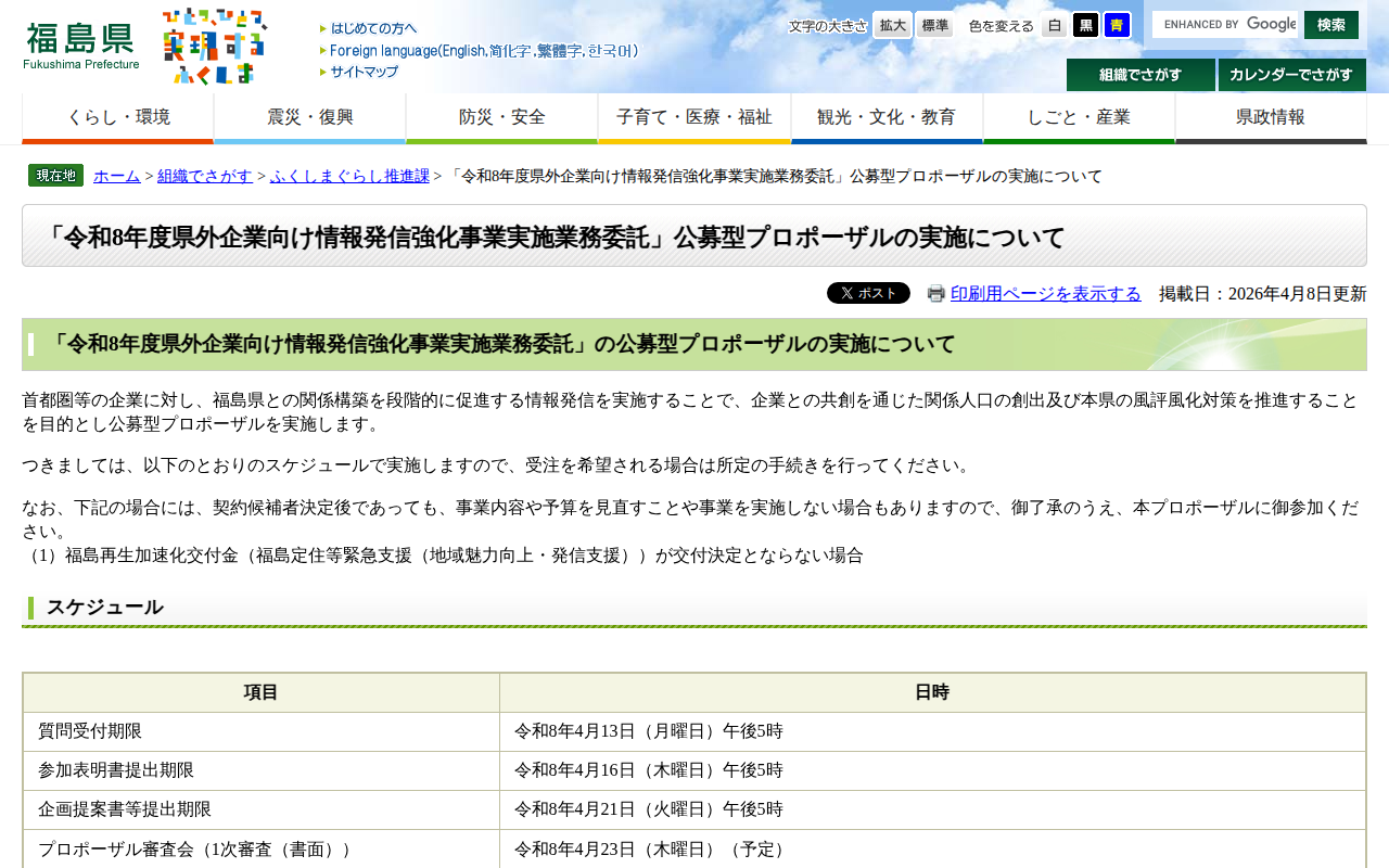 「令和8年度県外企業向け情報発信強化事業実施業務委託」公募型プロポーザルの実施について - 福島県ホームページ