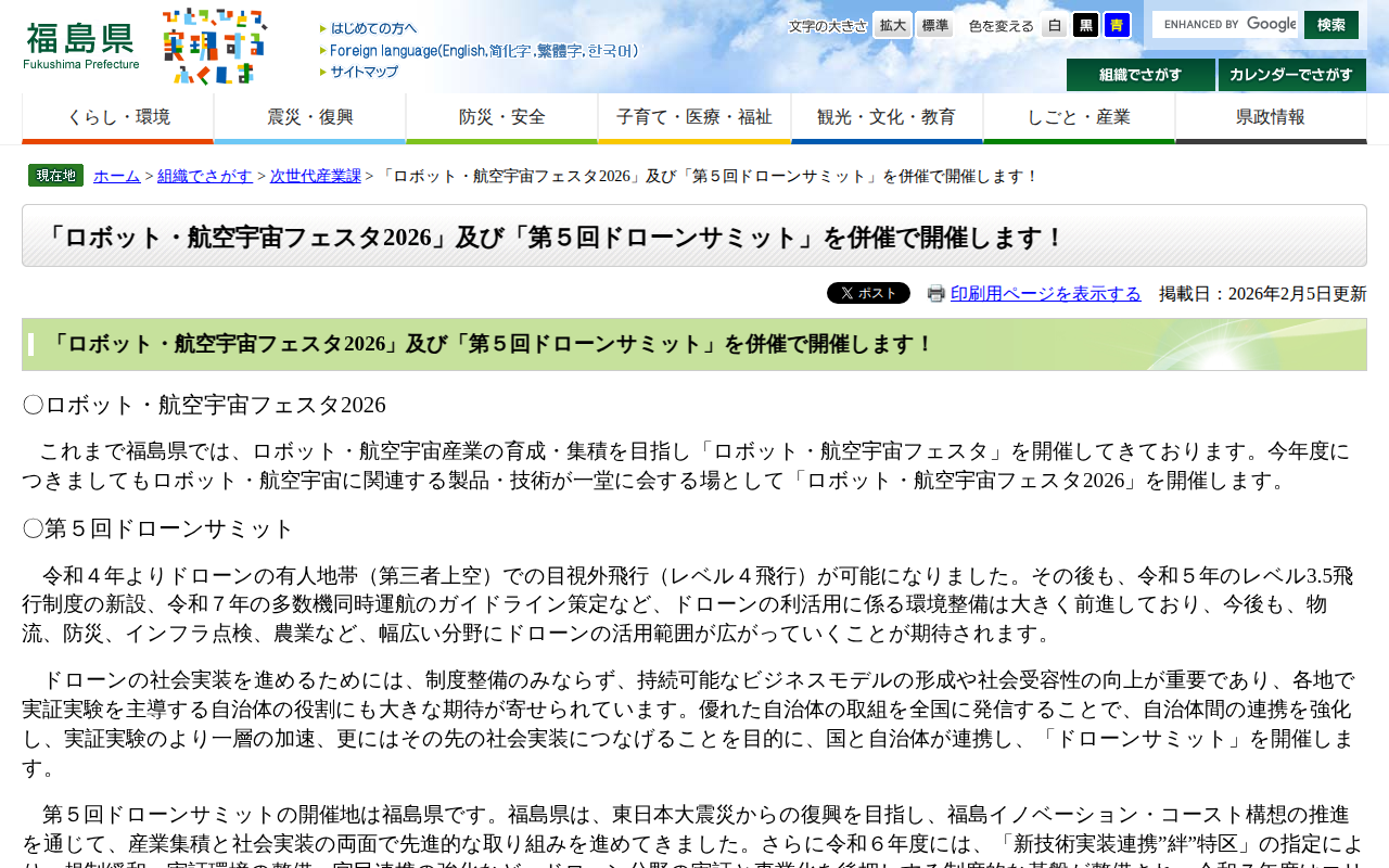 「ロボット・航空宇宙フェスタ2026」及び「第5回ドローンサミット」を併催で開催します! - 福島県ホームページ