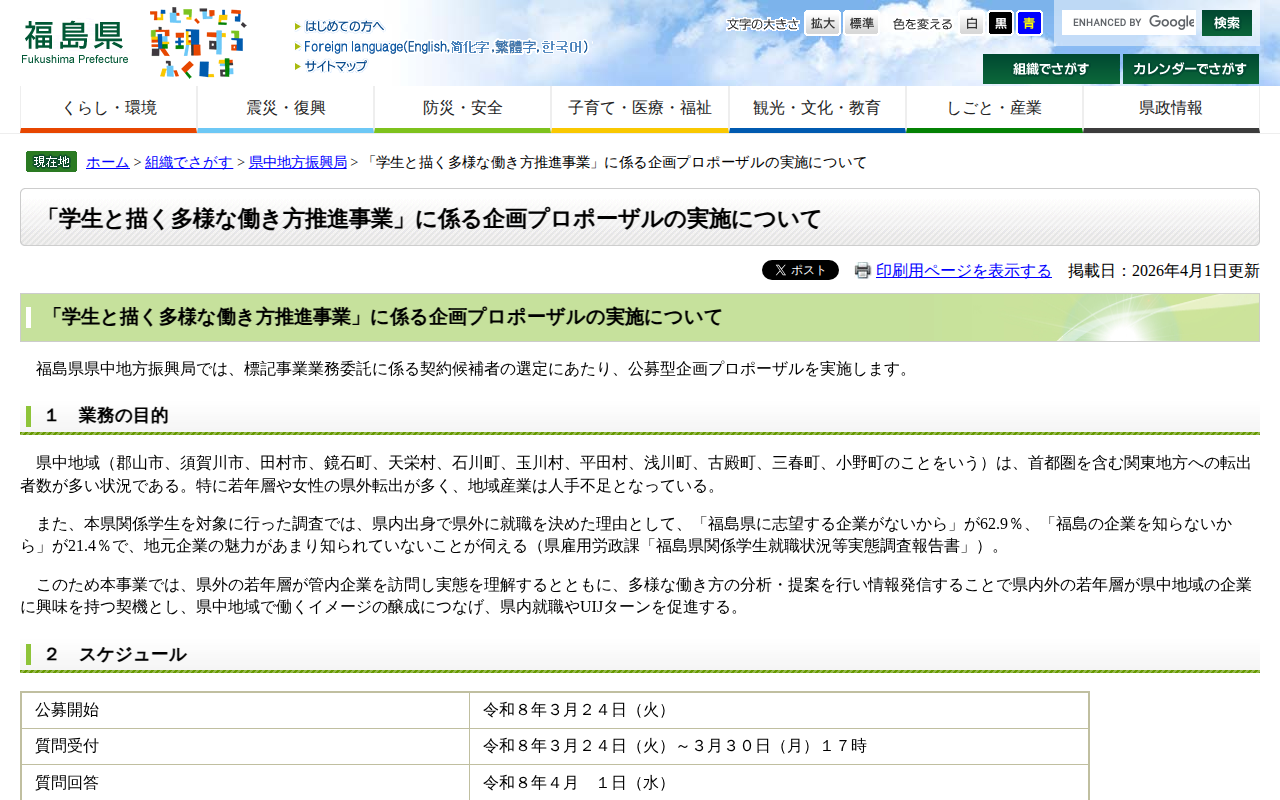 「学生と描く多様な働き方推進事業」に係る企画プロポーザルの実施について - 福島県ホームページ