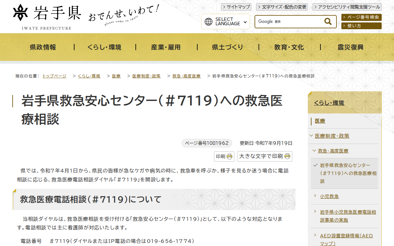 岩手県 - 岩手県救急安心センター(#7119)への救急医療相談