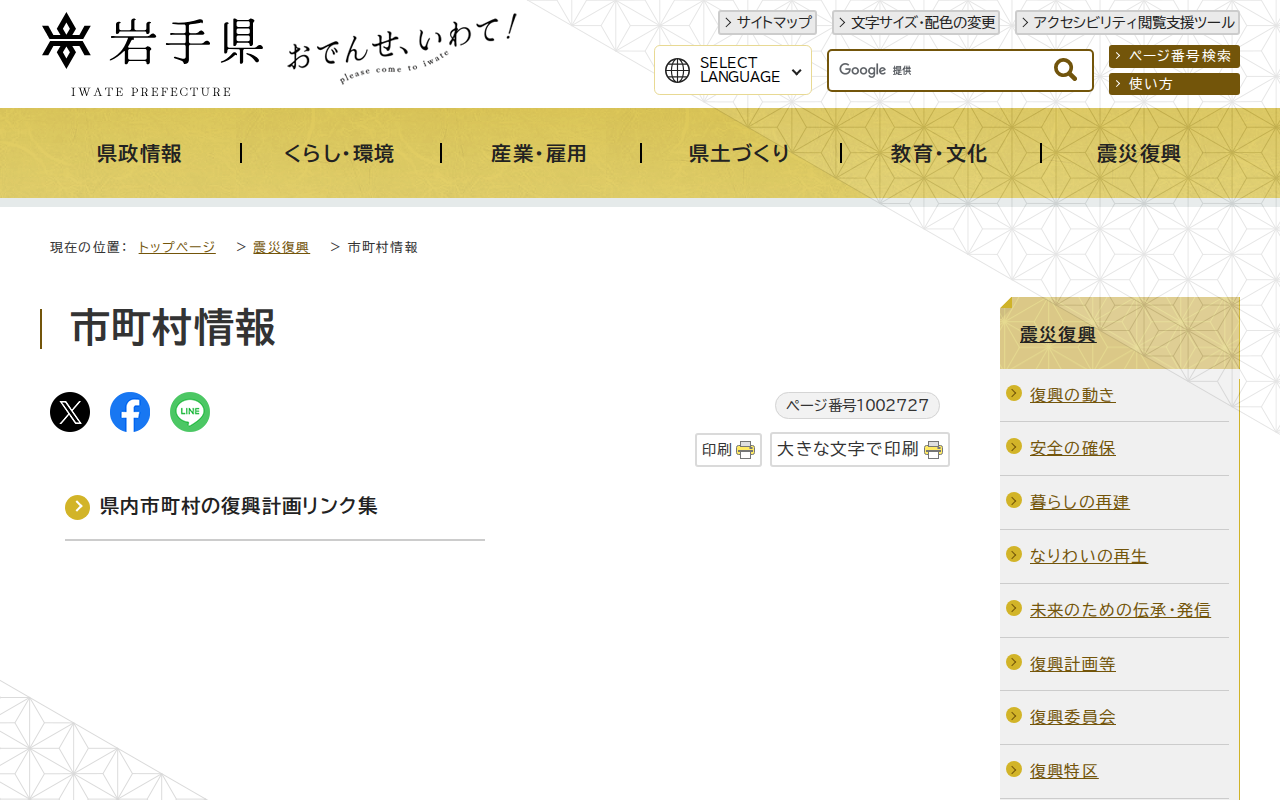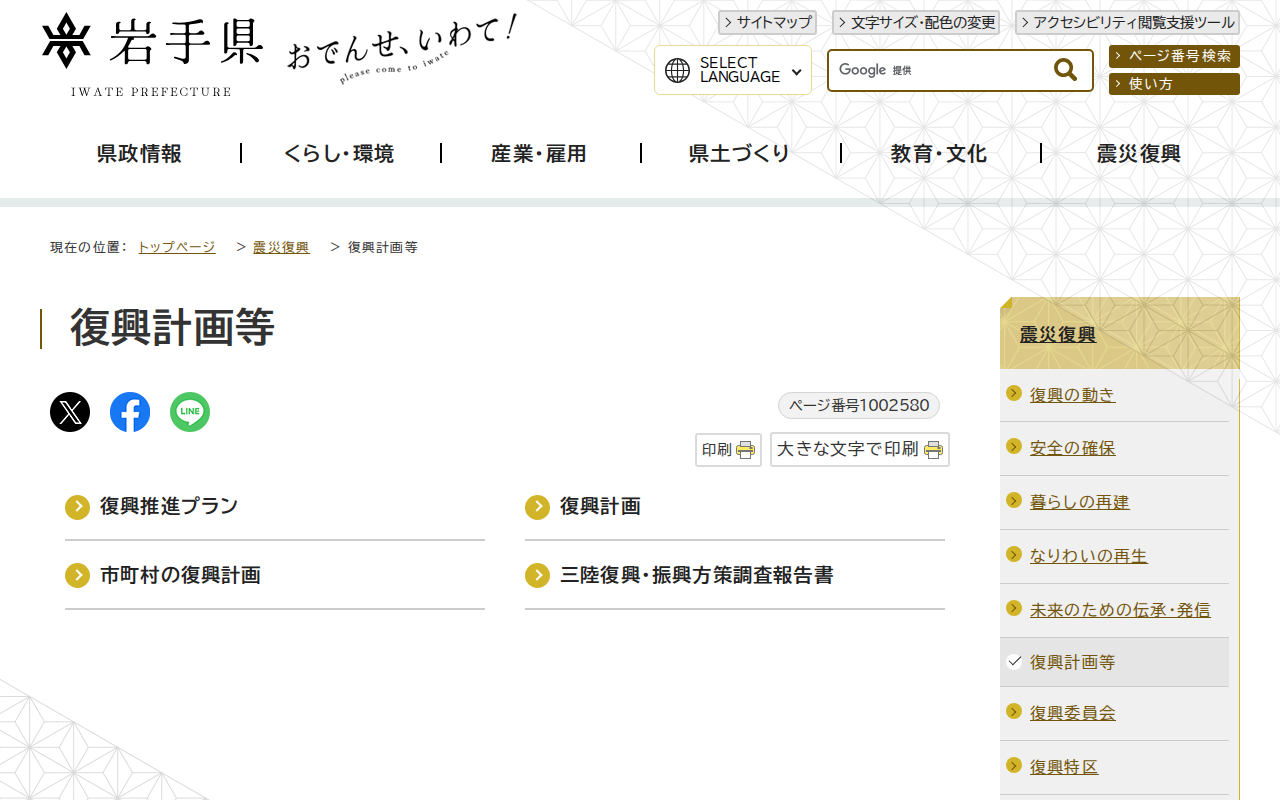 岩手県 - 復興計画等