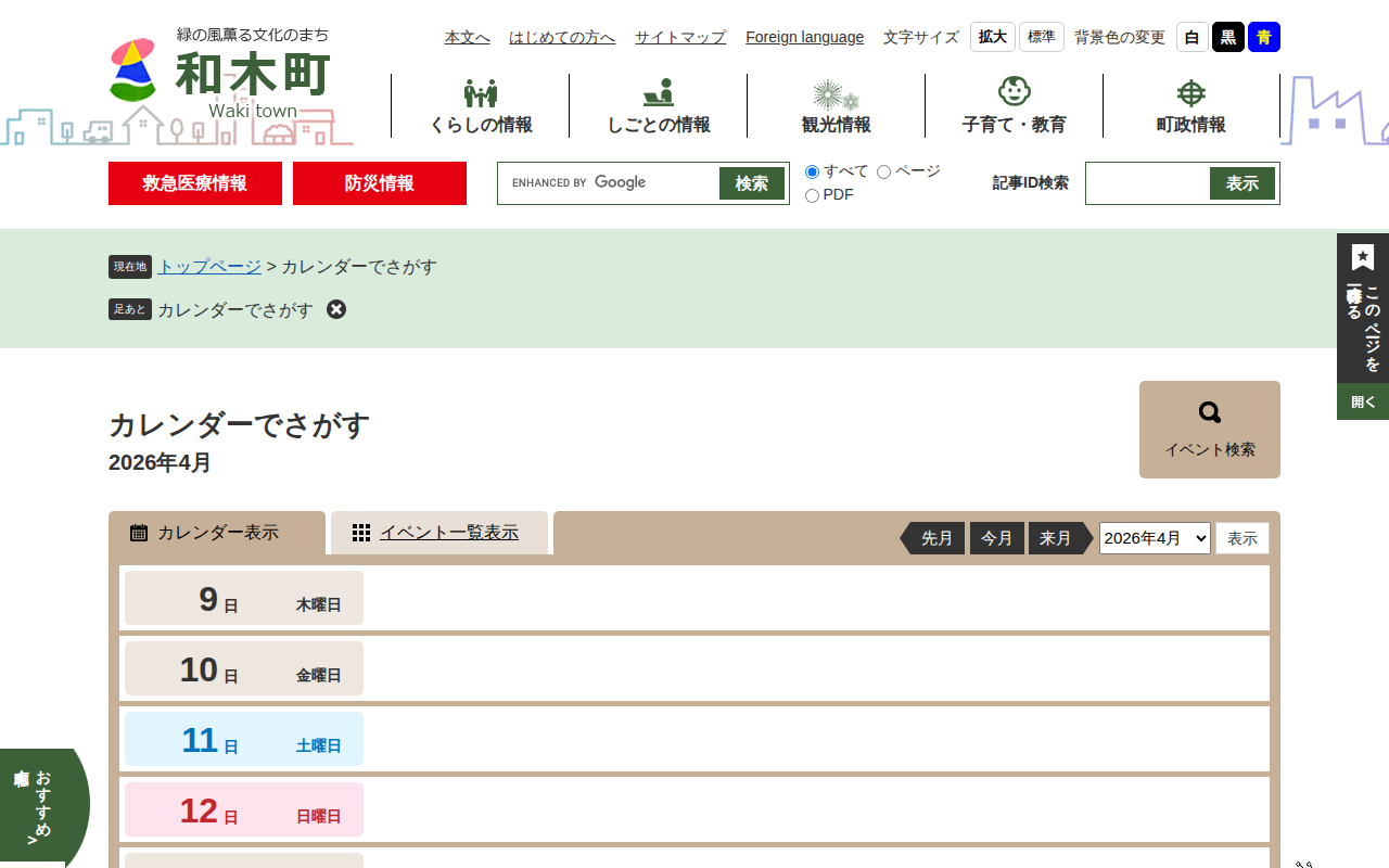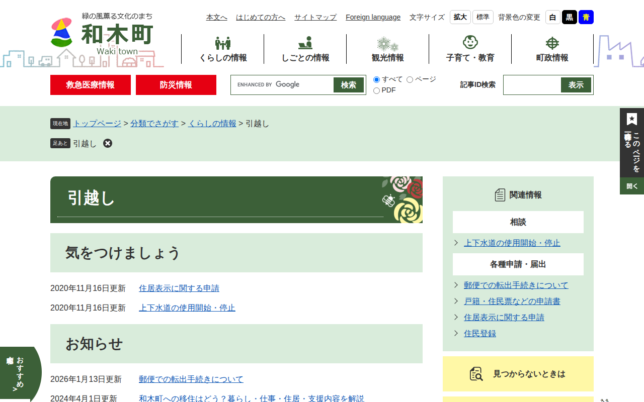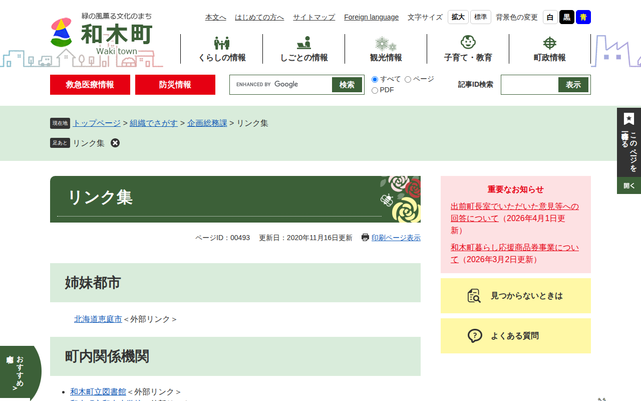 www.town.waki.lg.jpで最近保存されたページ一覧です。 気になるページを開くと、そのURLの保存履歴を時系列で確認できます。