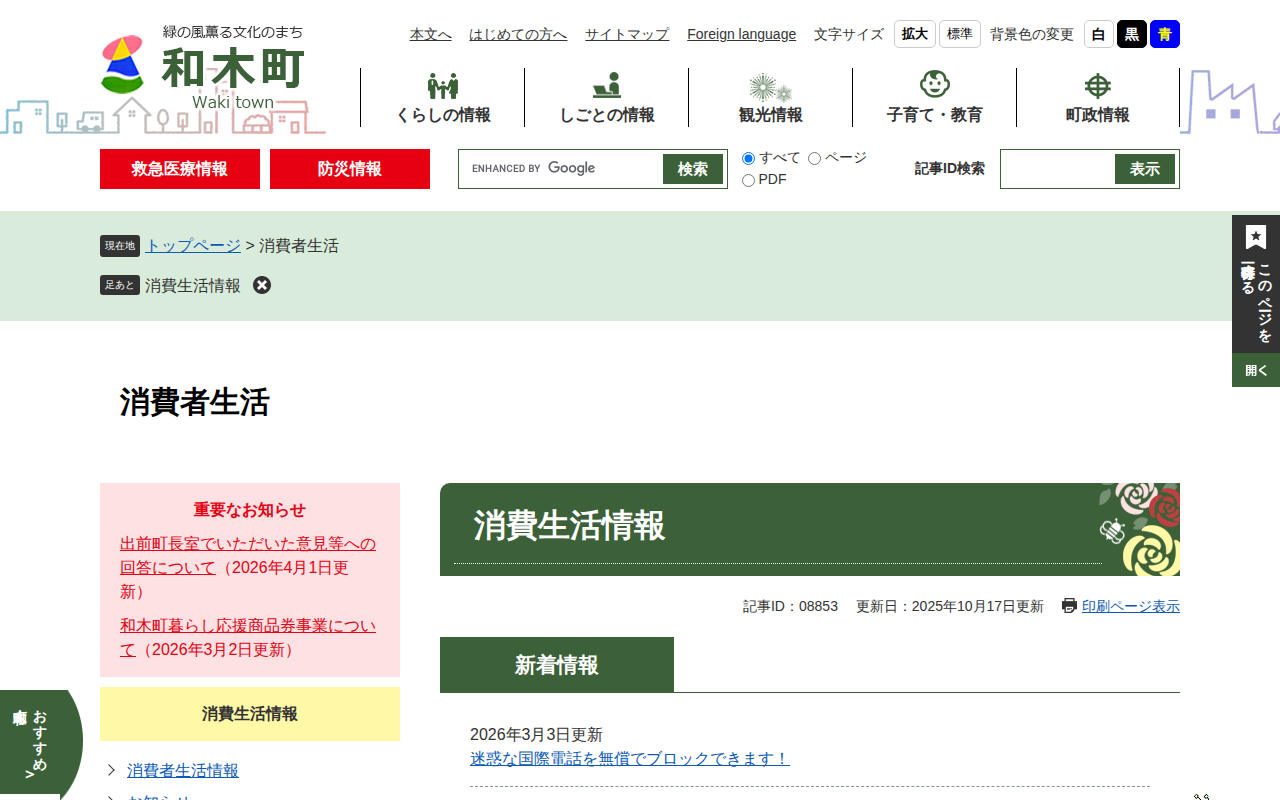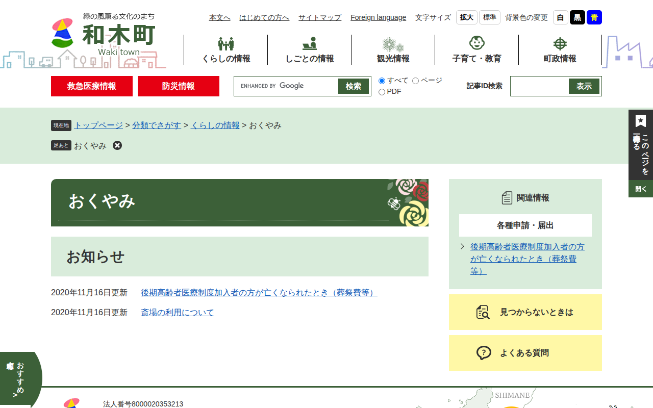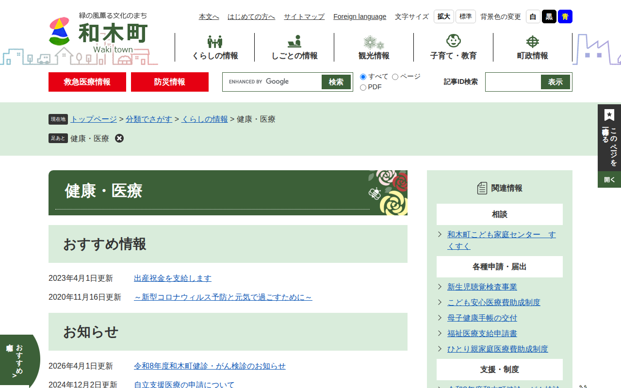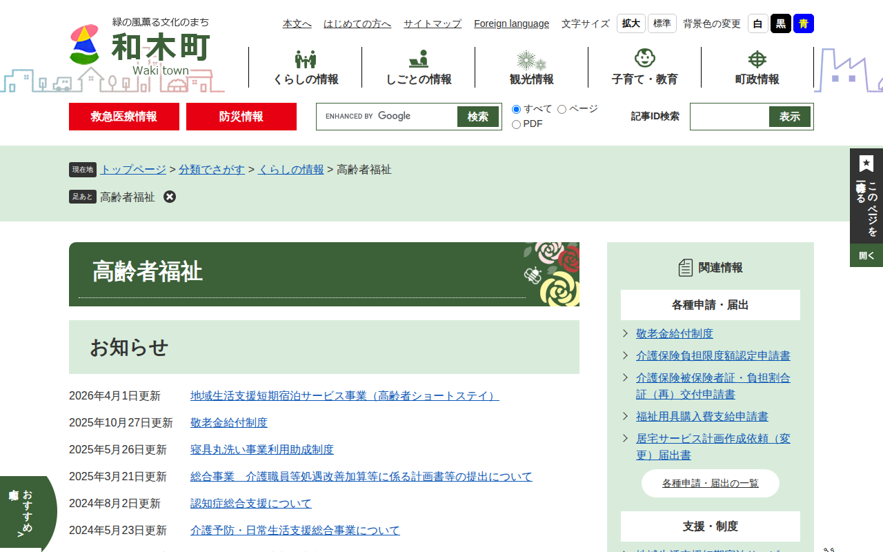 www.town.waki.lg.jpで最近保存されたページ一覧です。 気になるページを開くと、そのURLの保存履歴を時系列で確認できます。