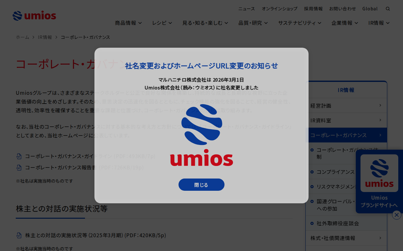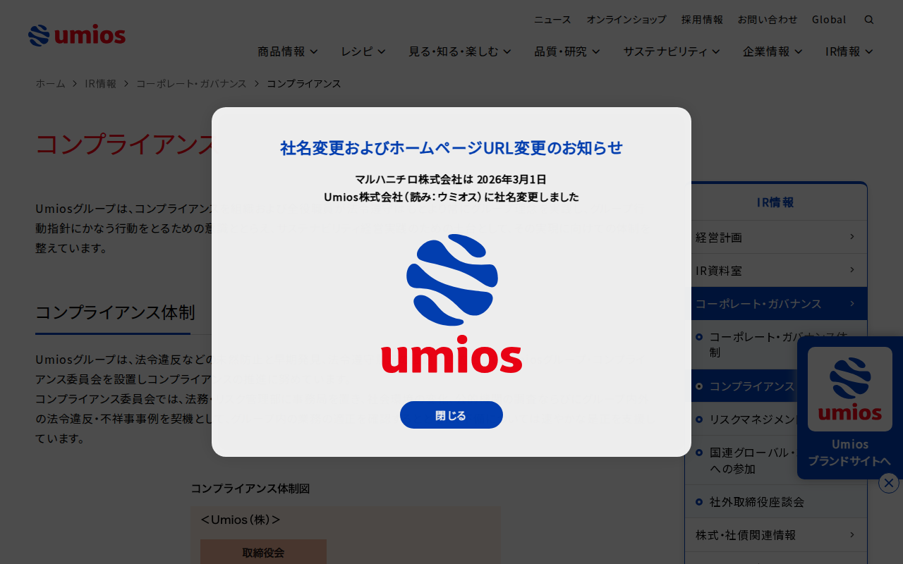 コンプライアンス | コーポレート・ガバナンス | IR情報 | Umios