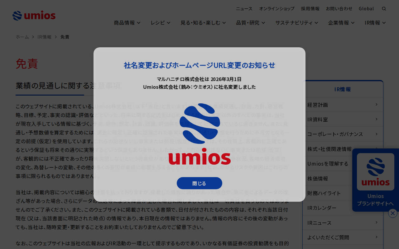 このページはUmios株式会社のIR情報における免責事項を記載しています。業績見通しや将来予測は現在の情報に基づく予測に過ぎず、正確性や実現を保証するものではありません。技術、需要、価格、競争状況、経済環境の変化、為替変...