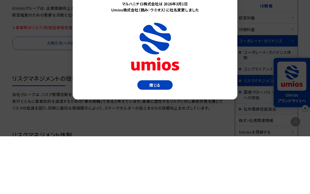 リスクマネジメント | コーポレート・ガバナンス | IR情報 | Umios
