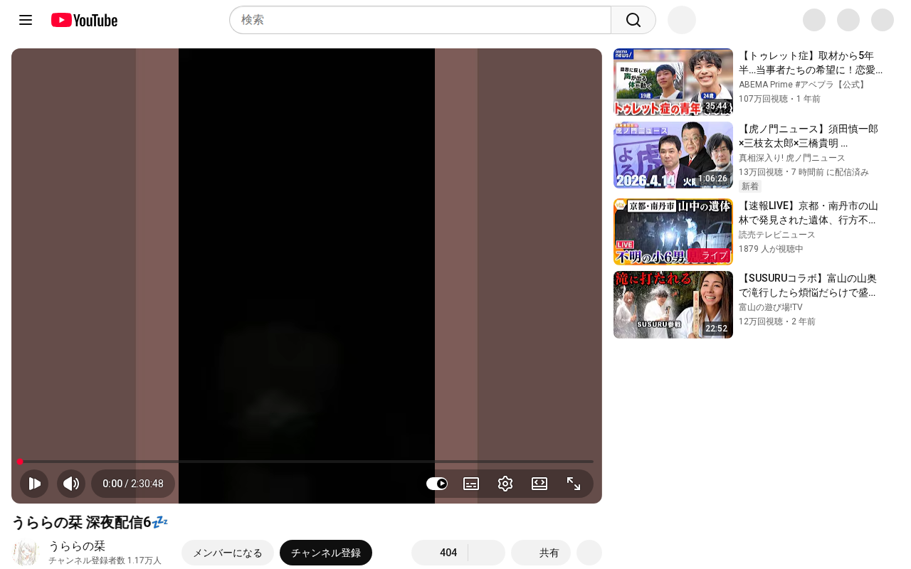 このページは、YouTubeチャンネル「うららの栞」による深夜配信動画の情報ページです。2時間31分の配信動画で、1ヶ月前に配信済みです。チャンネル登録者数は1.17万人で、動画には詳細な説明が追加されていません。同チャ...