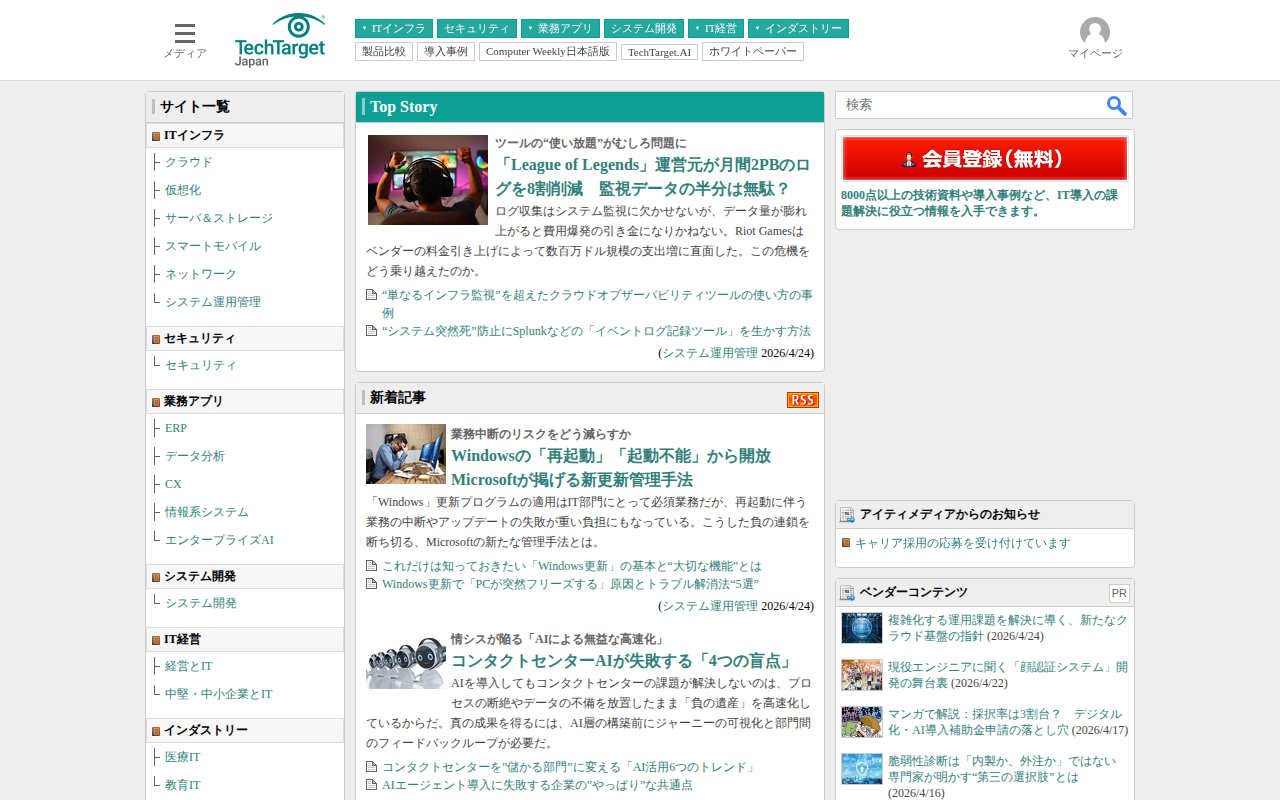 IT総合情報ポータル「ITmedia」Home
