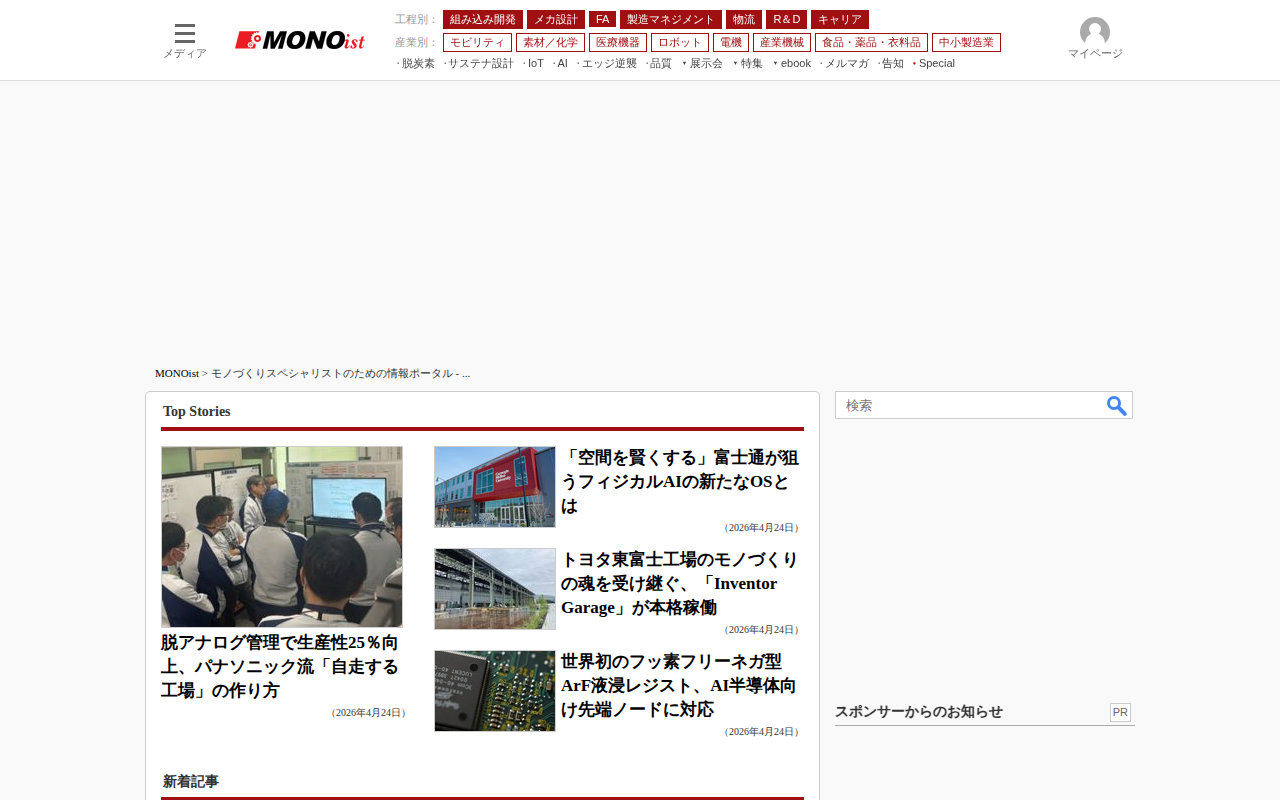 モノづくりスペシャリストのための情報ポータル - MONOist