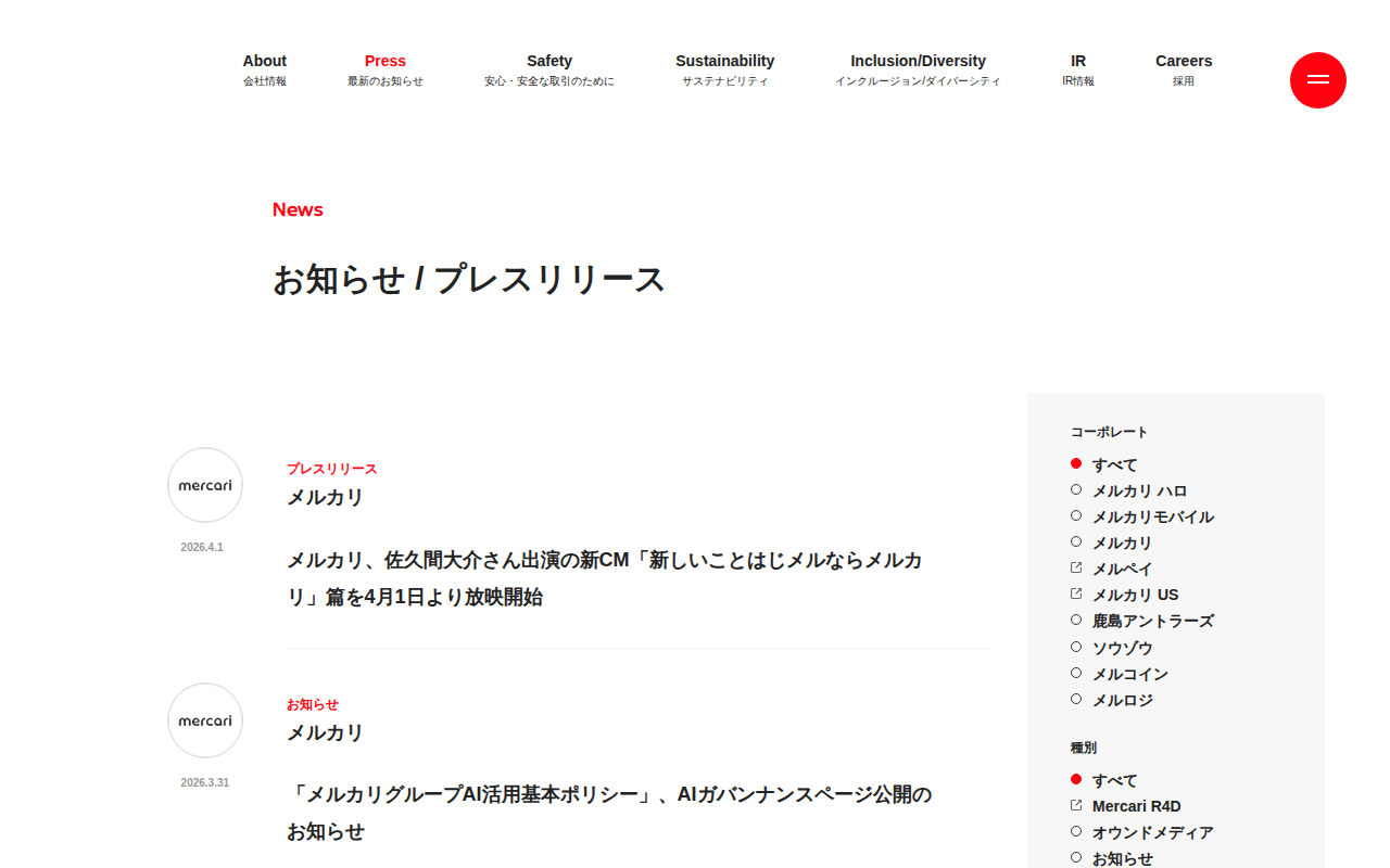 about.mercari.com/press/newsのウェブアーカイブ(魚拓)です。 元のページが削除されても、保存されたスクリーンショットとHTMLで内容を確認できます。