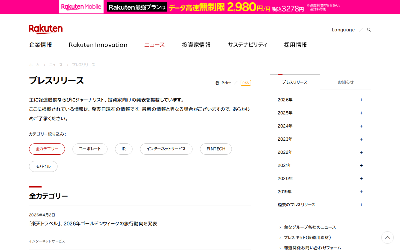 corp.rakuten.co.jp/news/pressのウェブアーカイブ(魚拓)です。 元のページが削除されても、保存されたスクリーンショットとHTMLで内容を確認できます。