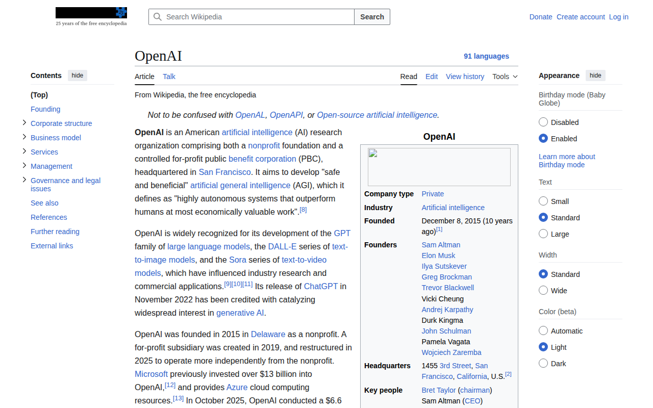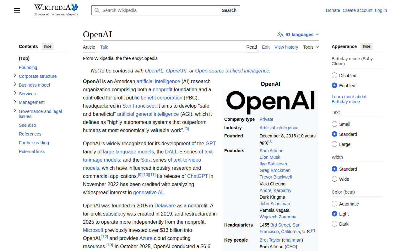 en.wikipedia.org/wiki/OpenAIのウェブアーカイブ(魚拓)です。 元のページが削除されても、保存されたスクリーンショットとHTMLで内容を確認できます。