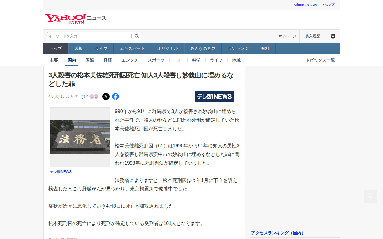 news.yahoo.co.jp/articles/15ba974d78ae79eabbf101769e279447336eab6bのウェブアーカイブ(魚拓)です。 元のページが削除されても、保存されたスクリーンショットとHTMLで内容を確認できます。