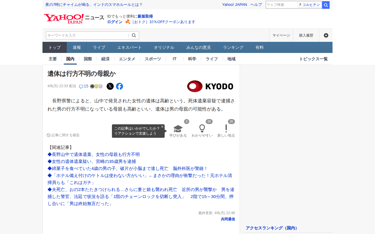 news.yahoo.co.jp/articles/466fd41627f4203ba84696cbbf7f237e6efe2aa0のウェブアーカイブ(魚拓)です。 元のページが削除されても、保存されたスクリーンショットとHTMLで内容を確認できます。