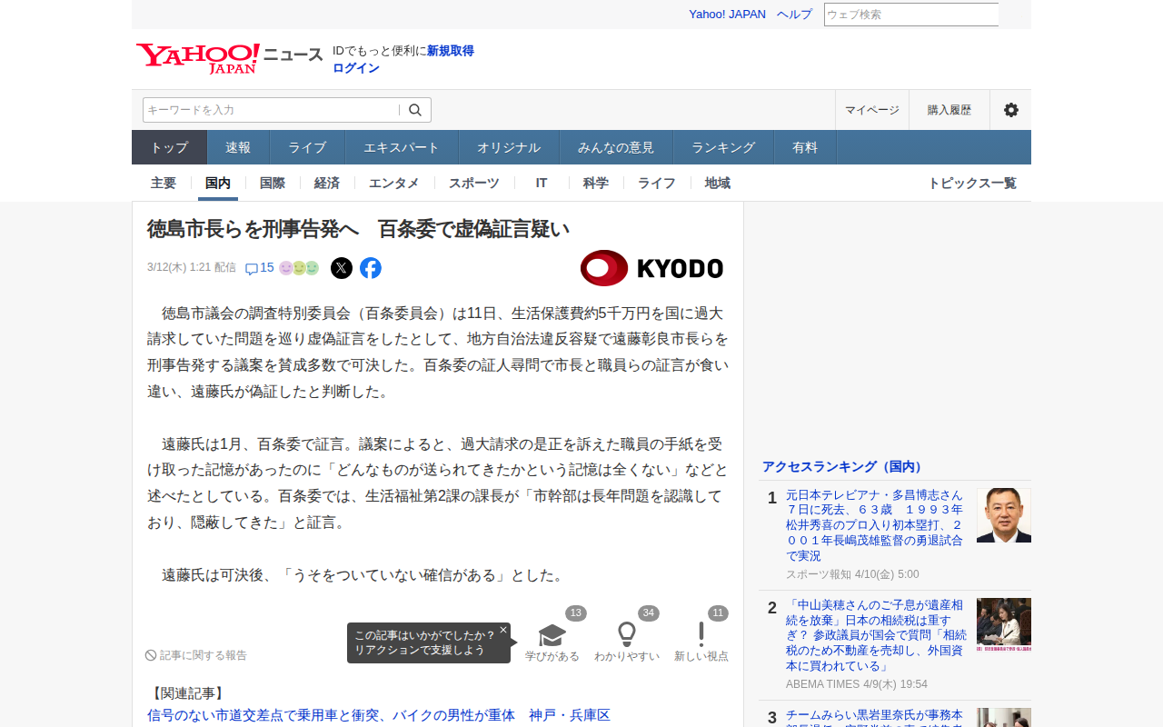 news.yahoo.co.jp/articles/b4100c836fc7df65527531e39c540ee2a7811b79のウェブアーカイブ(魚拓)です。 元のページが削除されても、保存されたスクリーンショットとHTMLで内容を確認できます。