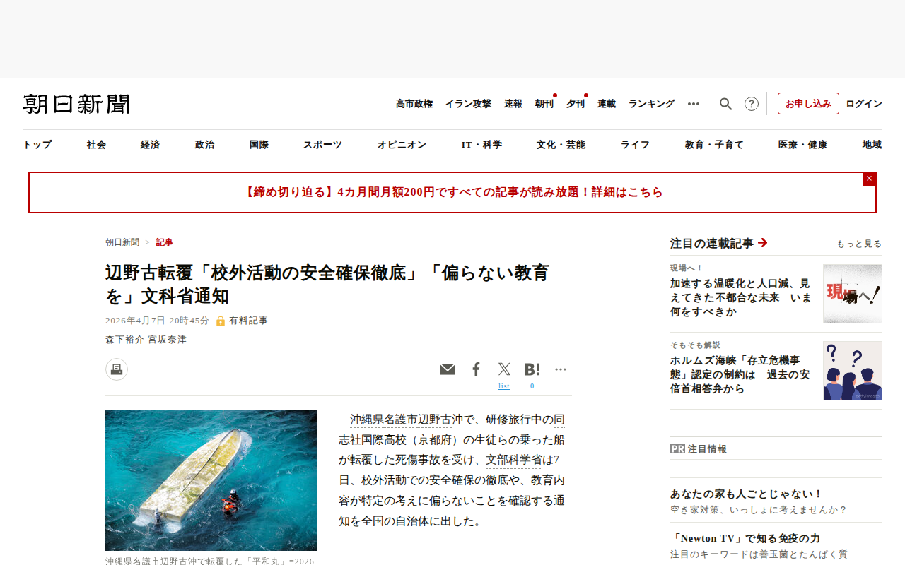 www.asahi.com/articles/ASV473DXXV47UTIL01ZM.htmlのウェブアーカイブ(魚拓)です。 元のページが削除されても、保存されたスクリーンショットとHTMLで内容を確認できます。