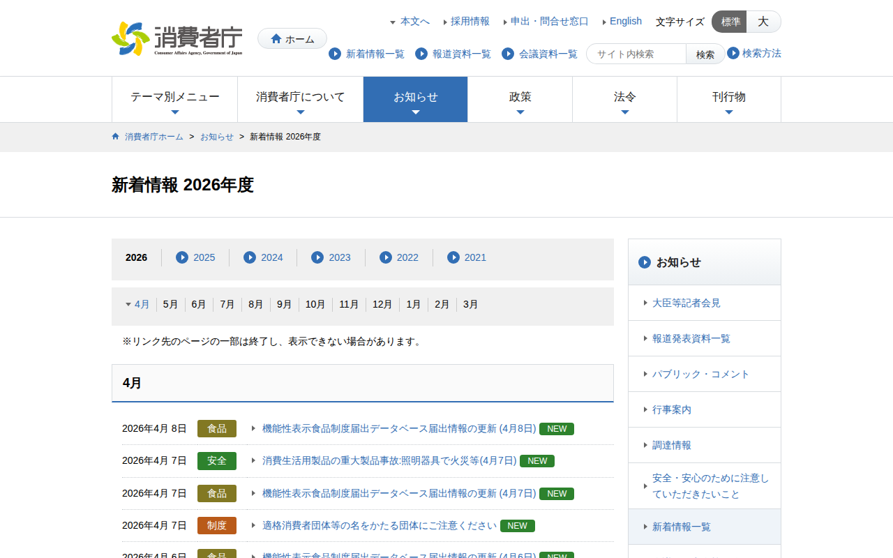 www.caa.go.jp/notice/archive/2026のウェブアーカイブ(魚拓)です。 元のページが削除されても、保存されたスクリーンショットとHTMLで内容を確認できます。