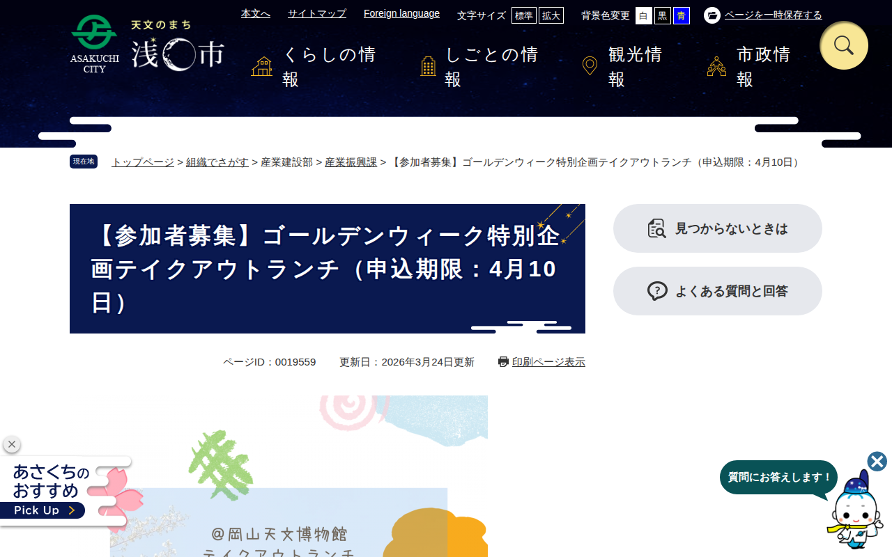 www.city.asakuchi.lg.jp/page/19559.htmlのウェブアーカイブ(魚拓)です。 元のページが削除されても、保存されたスクリーンショットとHTMLで内容を確認できます。