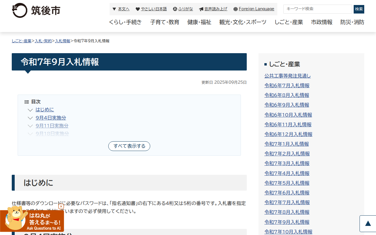 www.city.chikugo.lg.jp/shigoto/_3716/_30694/_31487.htmlのウェブアーカイブ(魚拓)です。 元のページが削除されても、保存されたスクリーンショットとHTMLで内容を確認できます。