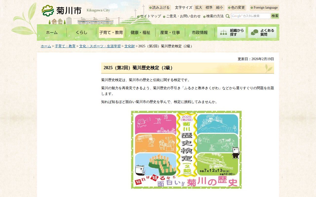 www.city.kikugawa.shizuoka.jp/shakaikyouiku/2025rekishikentei.htmlのウェブアーカイブ(魚拓)です。 元のページが削除されても、保存されたスクリーンショットとHTMLで内容を確認できます。