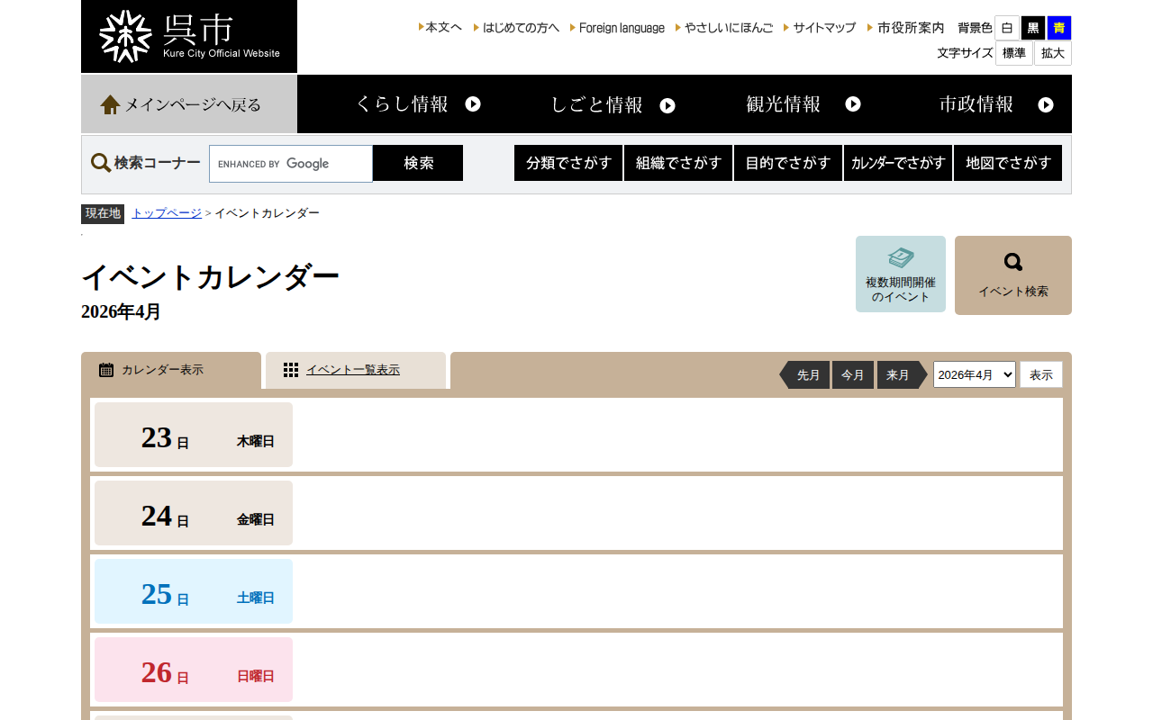 www.city.kure.lg.jp/calendar/index.php?dsp=1&y=2026&m=4&d=23