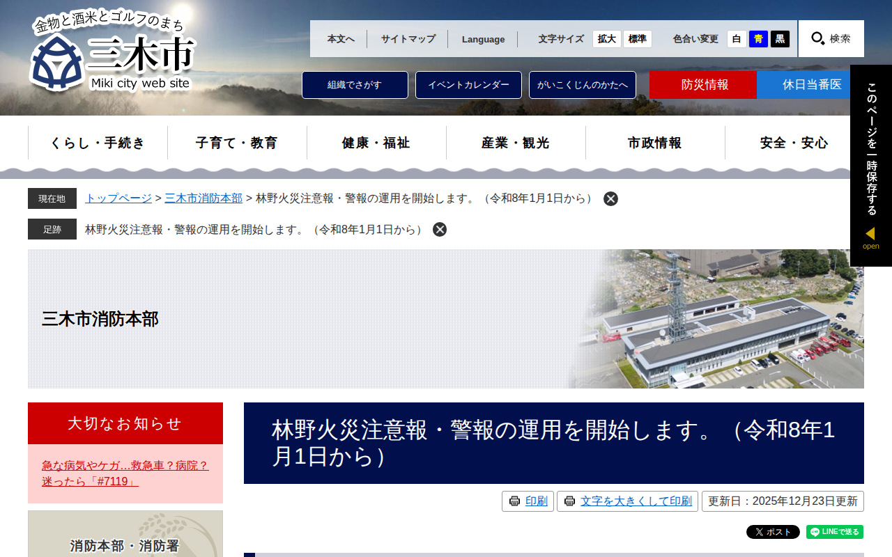 www.city.miki.lg.jp/site/shobo/88119.htmlのウェブアーカイブ(魚拓)です。 元のページが削除されても、保存されたスクリーンショットとHTMLで内容を確認できます。