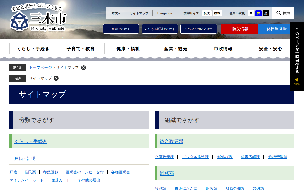www.city.miki.lg.jp/sitemap.htmlのウェブアーカイブ(魚拓)です。 元のページが削除されても、保存されたスクリーンショットとHTMLで内容を確認できます。