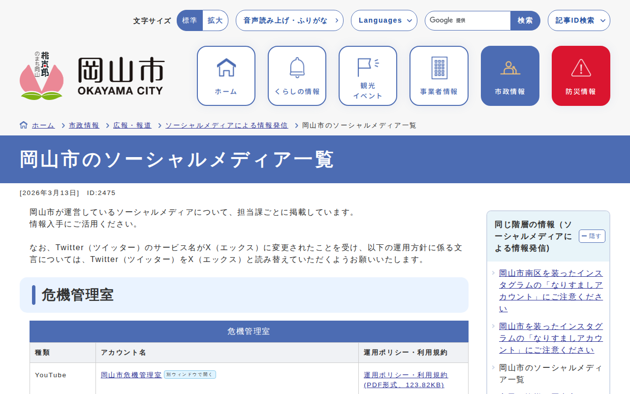 www.city.okayama.jp/shisei/0000002475.htmlのウェブアーカイブ(魚拓)です。 元のページが削除されても、保存されたスクリーンショットとHTMLで内容を確認できます。