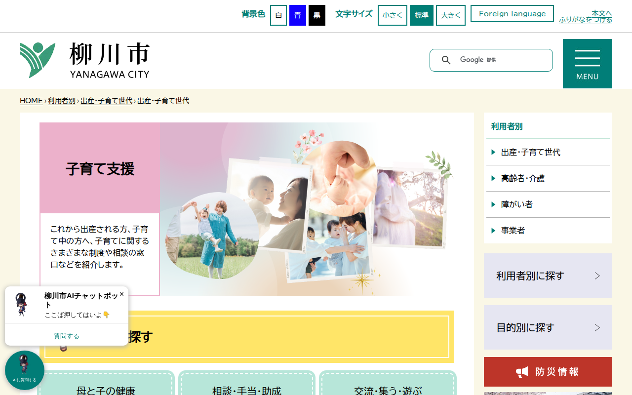 www.city.yanagawa.fukuoka.jp/riyoushabetsu/shussan-kosaodate/kosodate.html